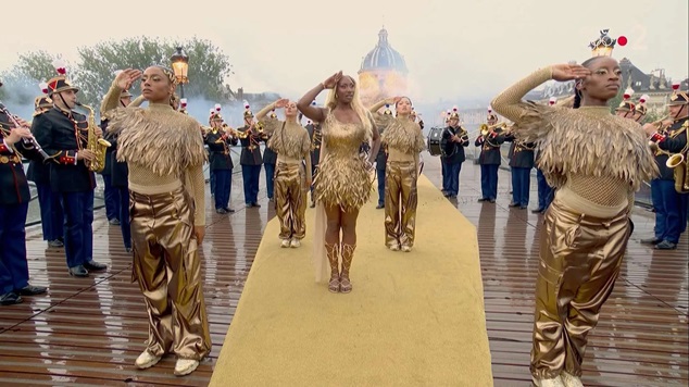 Le premier tableau déclenchant les hostilités fut la prestation d’Aya Nakamura. La chanteuse francophone la plus écoutée dans le monde s’est produite, portant une robe à plumes dorées, aux côtés de la garde républicaine, en uniforme, devant l’Académie française.