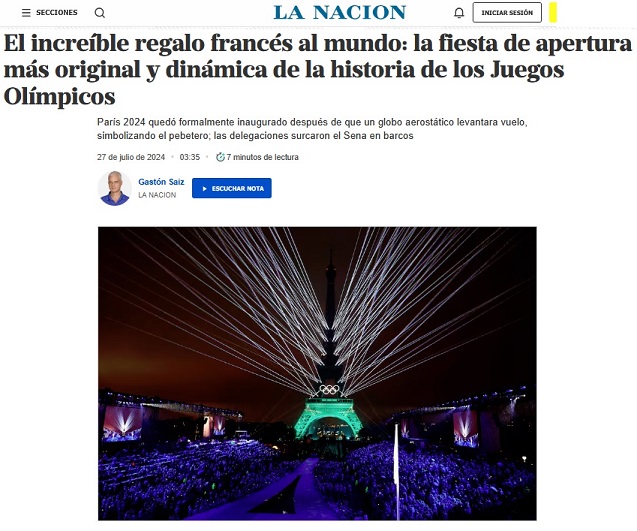 Le journal sportif espagnol MARCA a écrit : « Paris livre la meilleure cérémonie de l’histoire des Jeux ! »