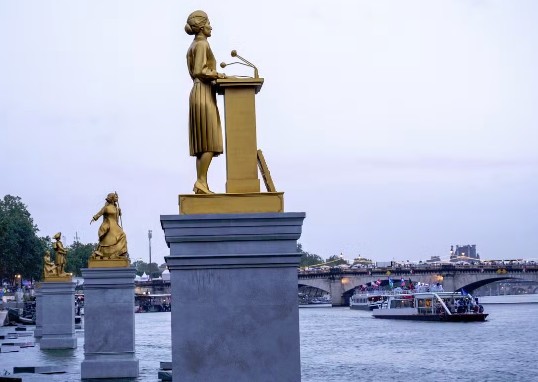 Le deuxième tableau qui m’a ébloui fut celui, près du pont Alexandre III, quand sont apparues, émergeant une à une de leur socle au son de la Marseillaise, dix grandes statues dorées représentant des femmes ayant marqué l’histoire de France dans les domaines des sciences, des arts, des lettres, de la politique ou du sport.